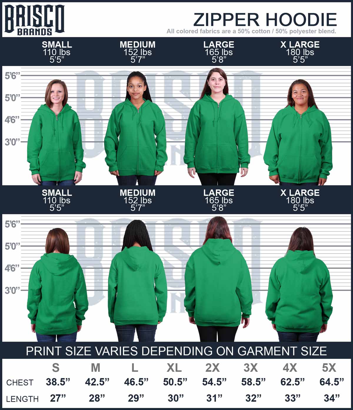 - 50% Cotton 50% Polyester Preshrunk Fleece Knit